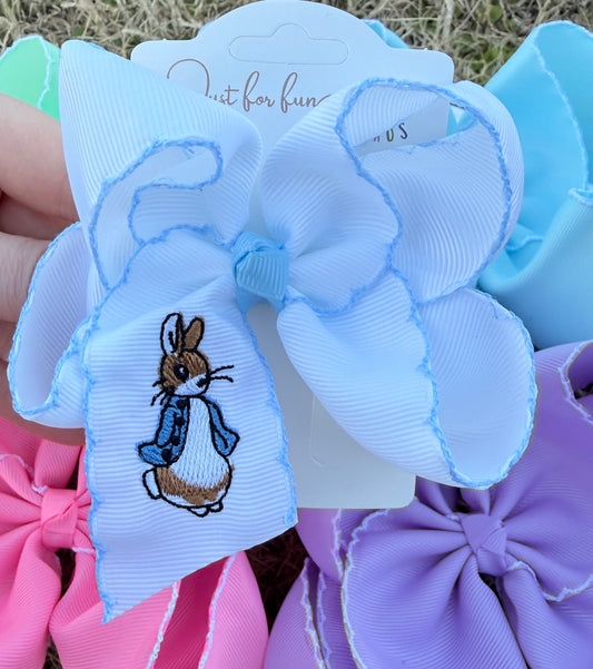 Blue Rabbit Embroidered Hair Bow