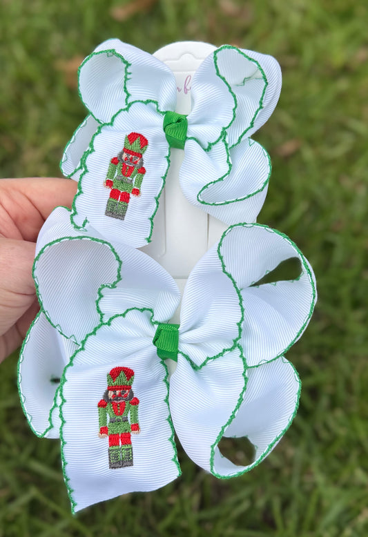 Green Nutcracker Embroidered Moonstitch Hair Bow