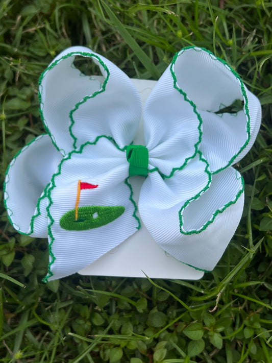 Green Golf Embroidered Hair Bow