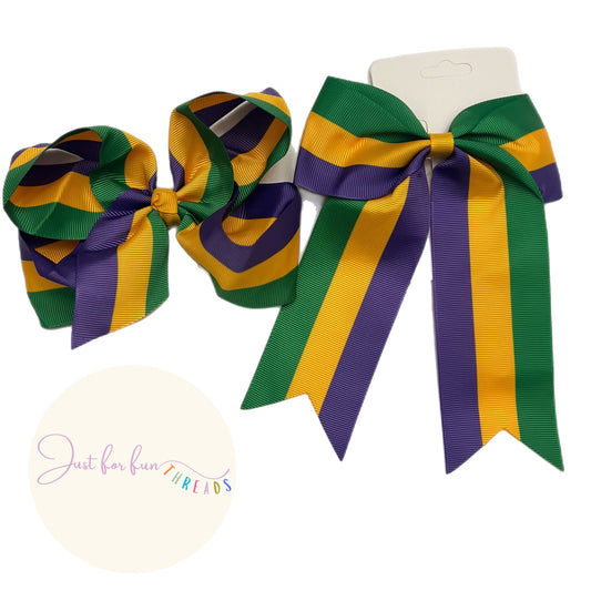 Mardi Gras Stripe Long Tail Hair Bow