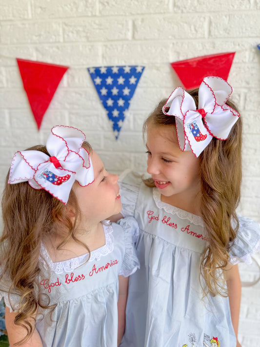 Patriotic Boot Moonstitch Hair Bow
