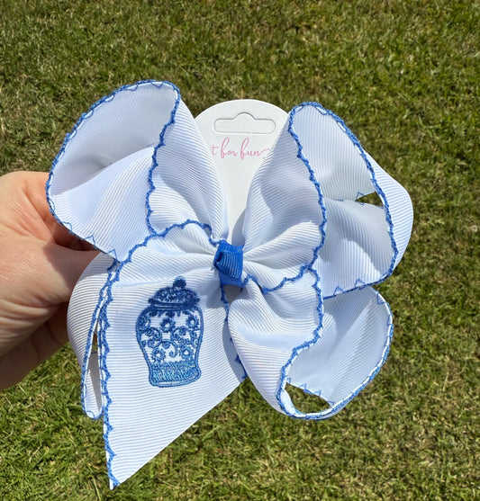 Ginger Jar Embroidered Hair Bow