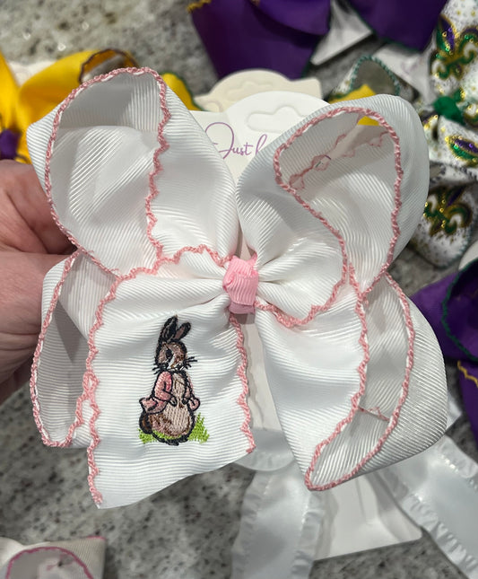 Sold outPink Rabbit Embroidered Hair Bow
