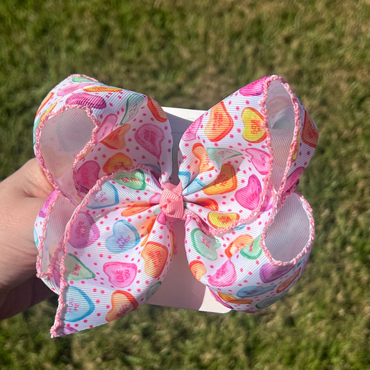 Valentine’s Day Heart Candy Moonstitch Hair Bow