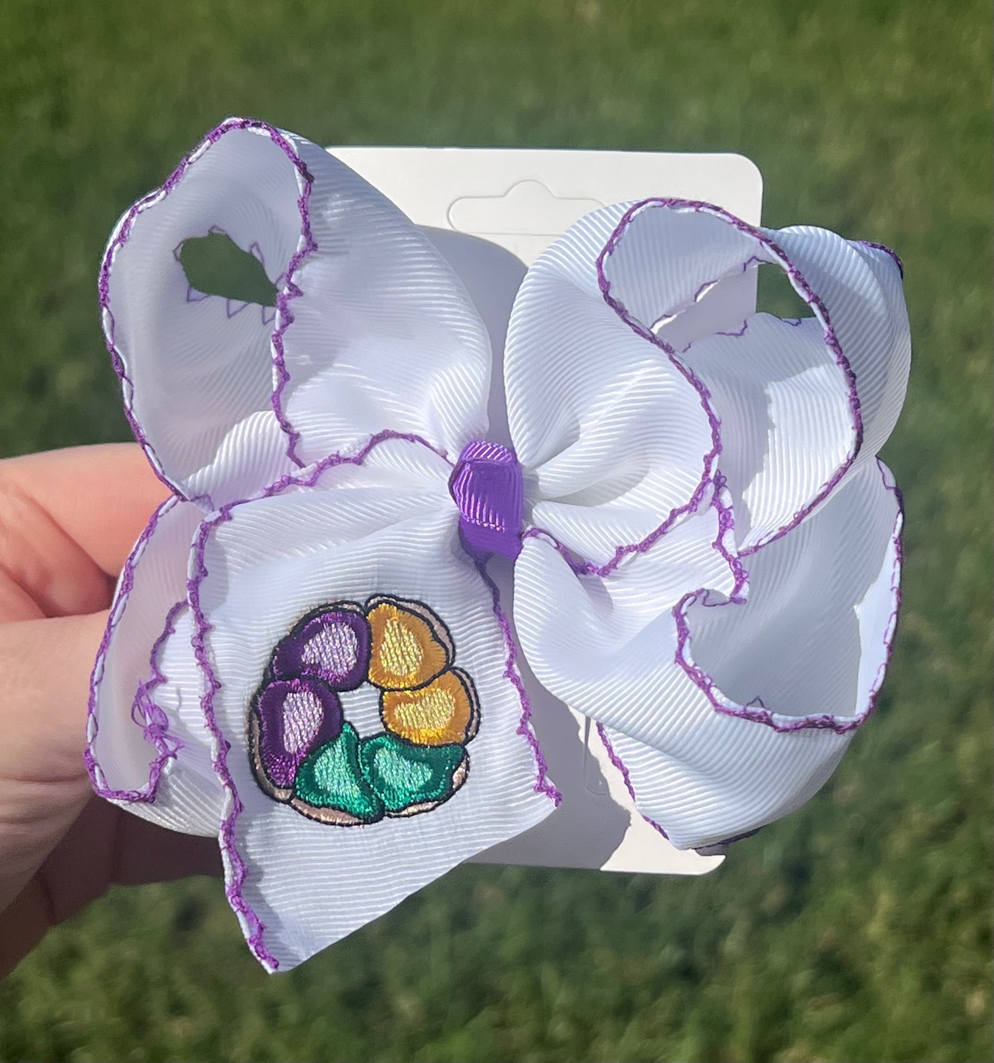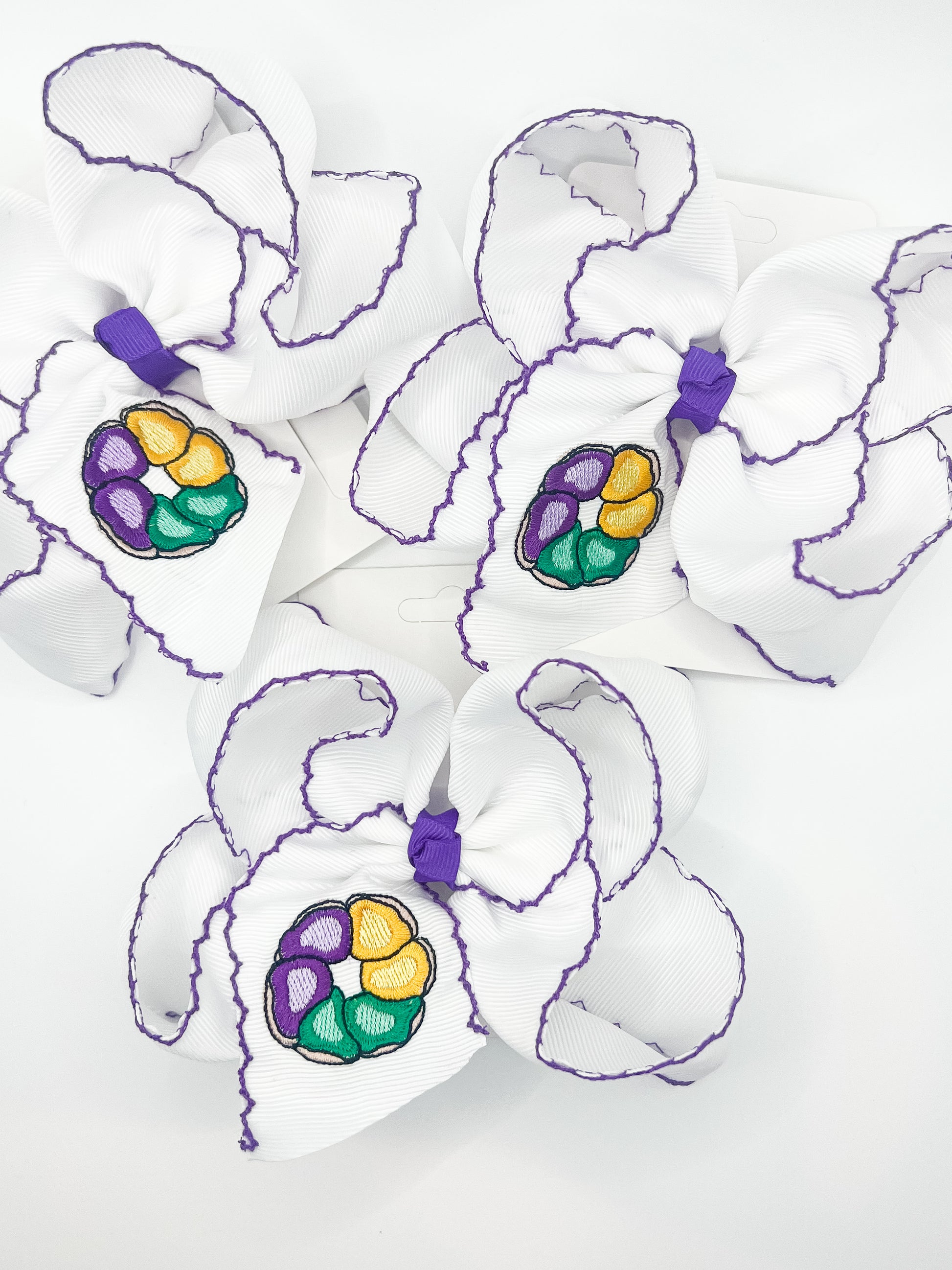 Whether she’s catching beads or enjoying her own slice of king cake, this bow adds the cutest sprinkle of Mardi Gras magic!