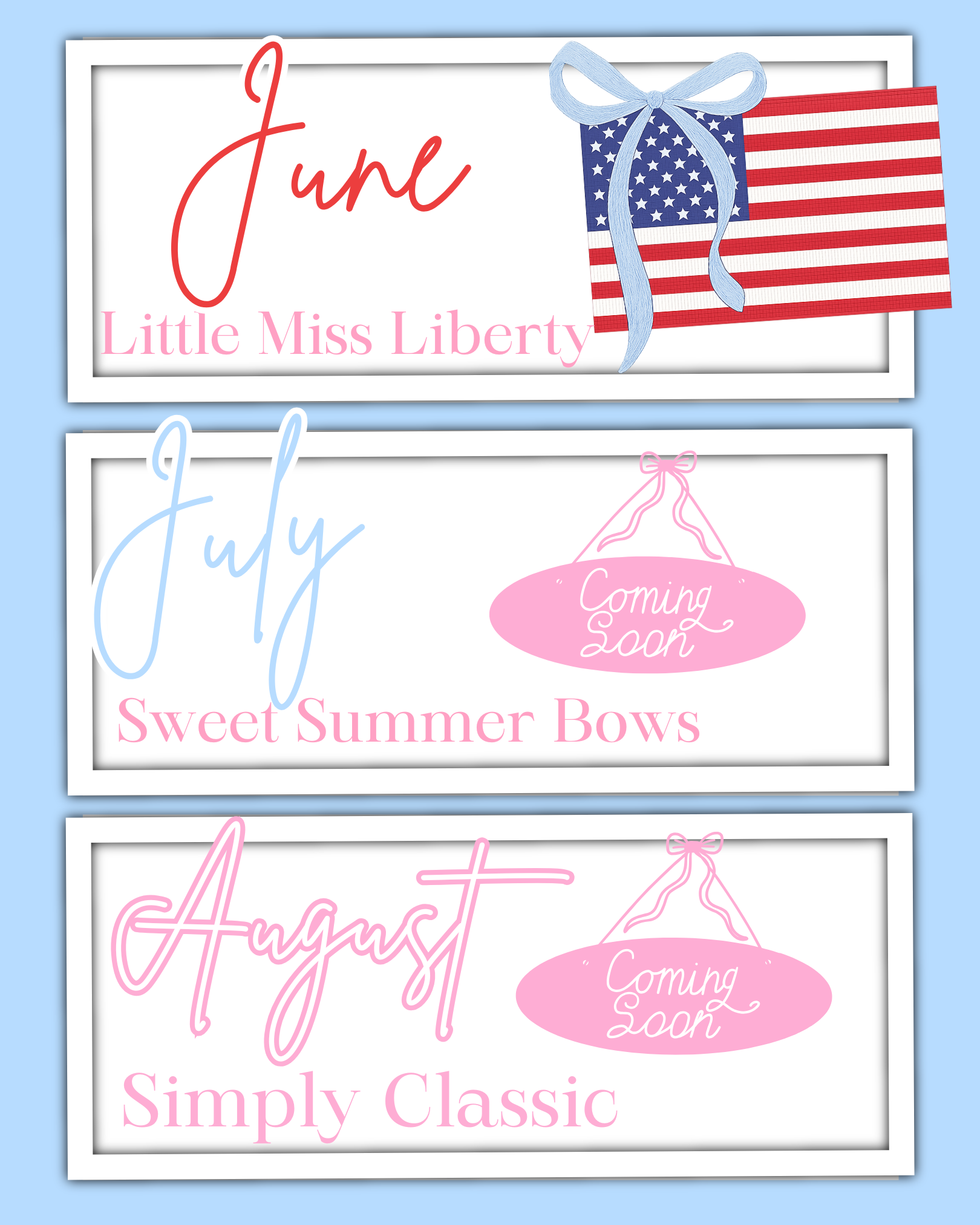 Orders placed after the 1st of the month will begin with next month’s box. These boxes will ship by the 10th of that month. Our bows are limited and made in advance to keep them extra special — thank you for understanding!