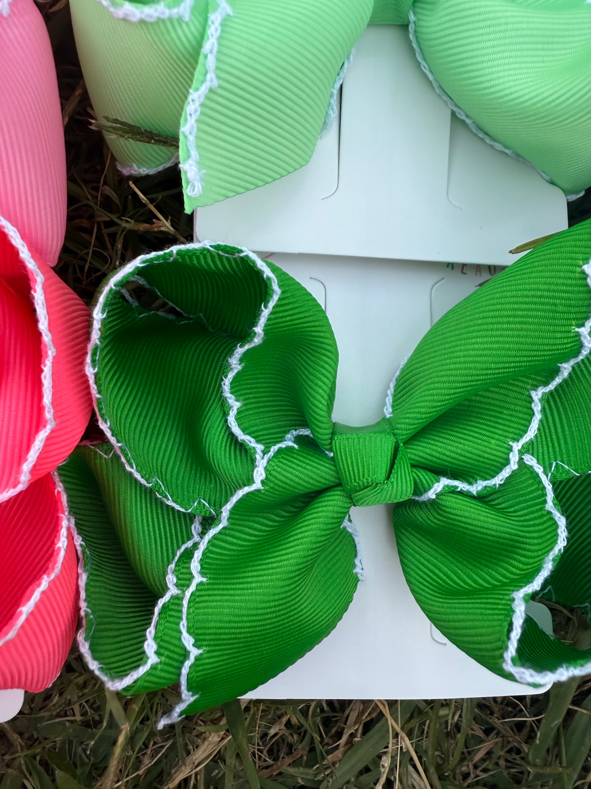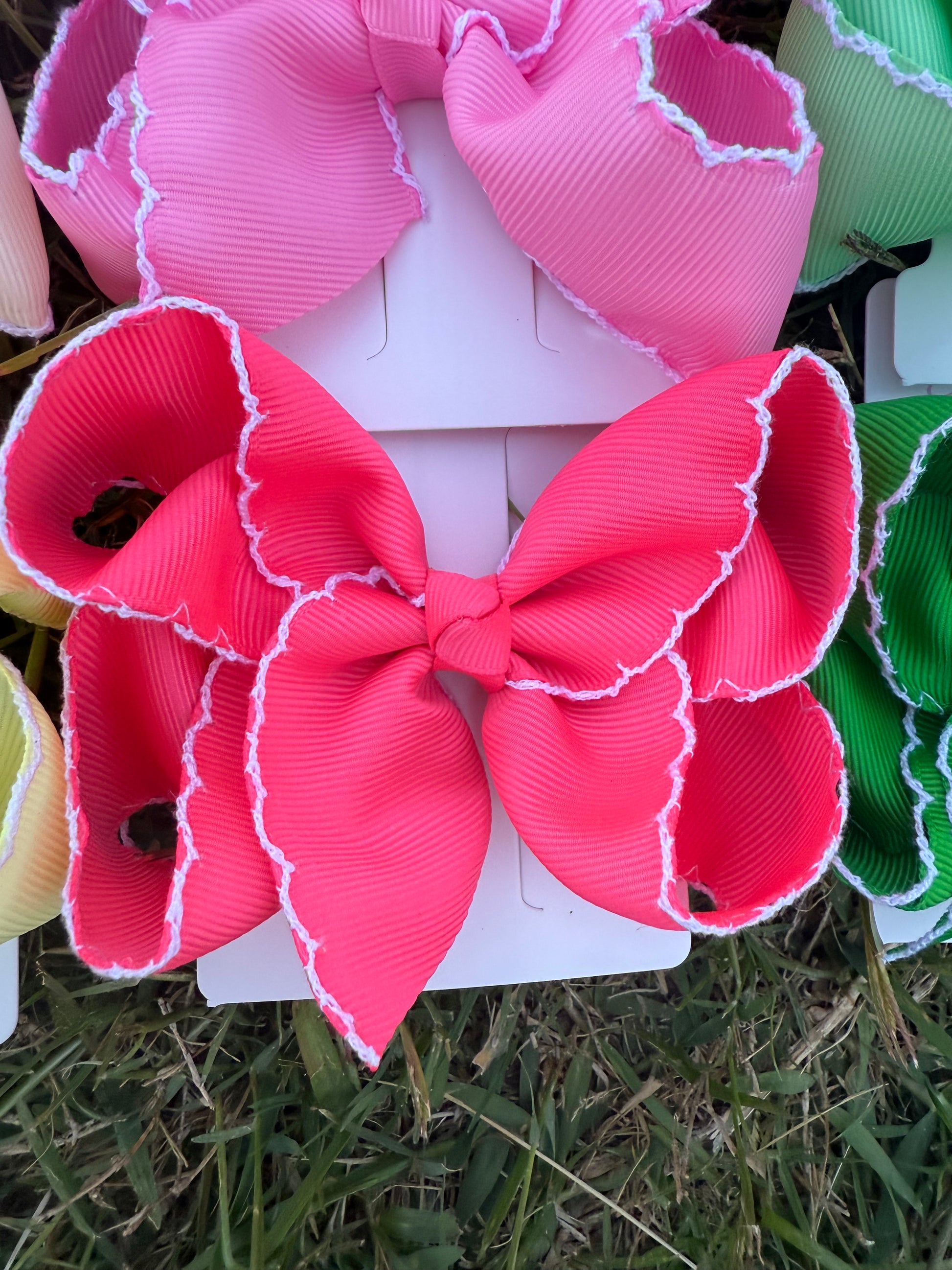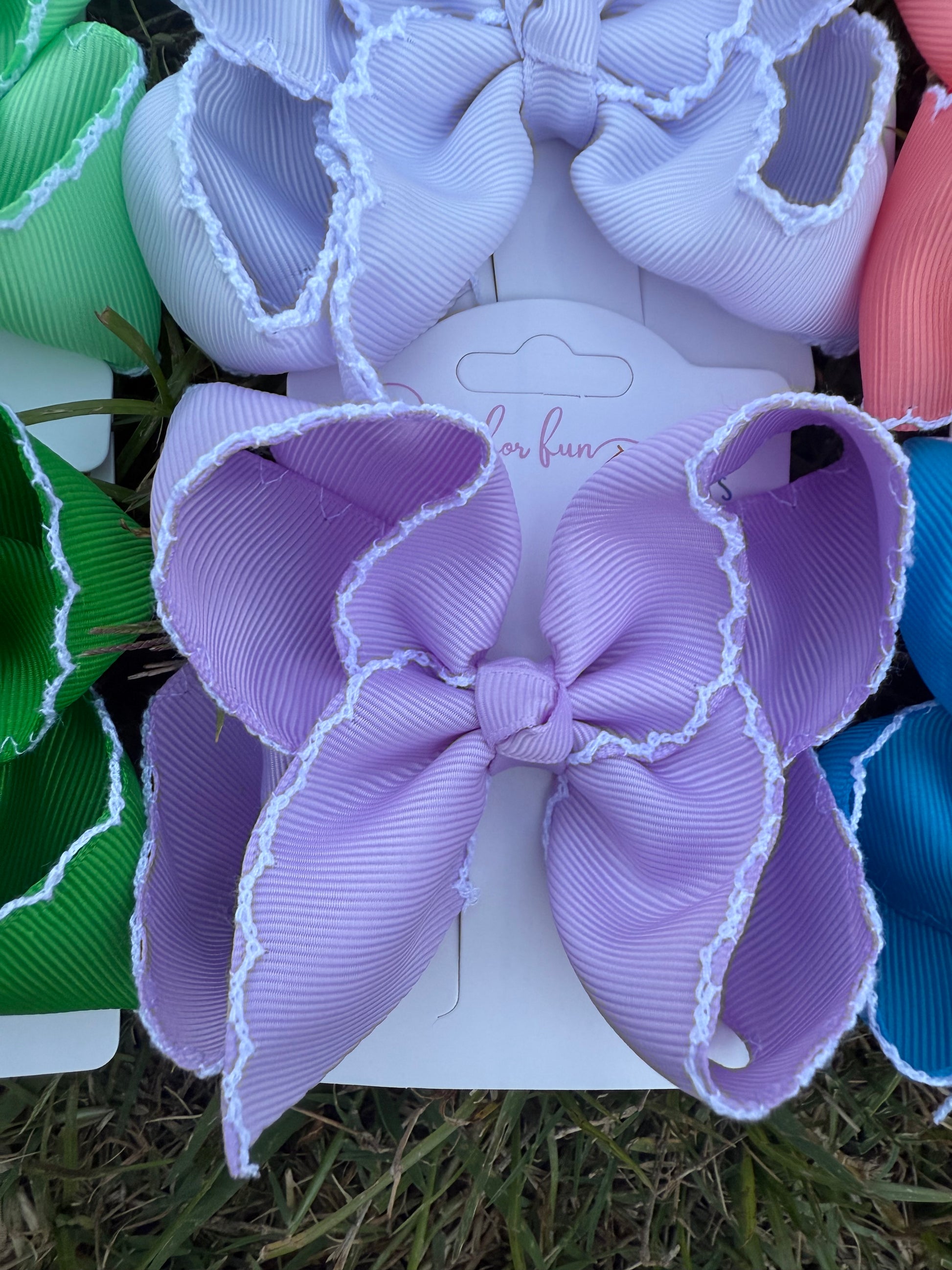 Made from high-quality materials, these bows are durable and long-lasting. They're easy to care for and can be spot cleaned as needed. With their charming moonstitch design, these bows are sure to become a favorite accessory for your little princess.